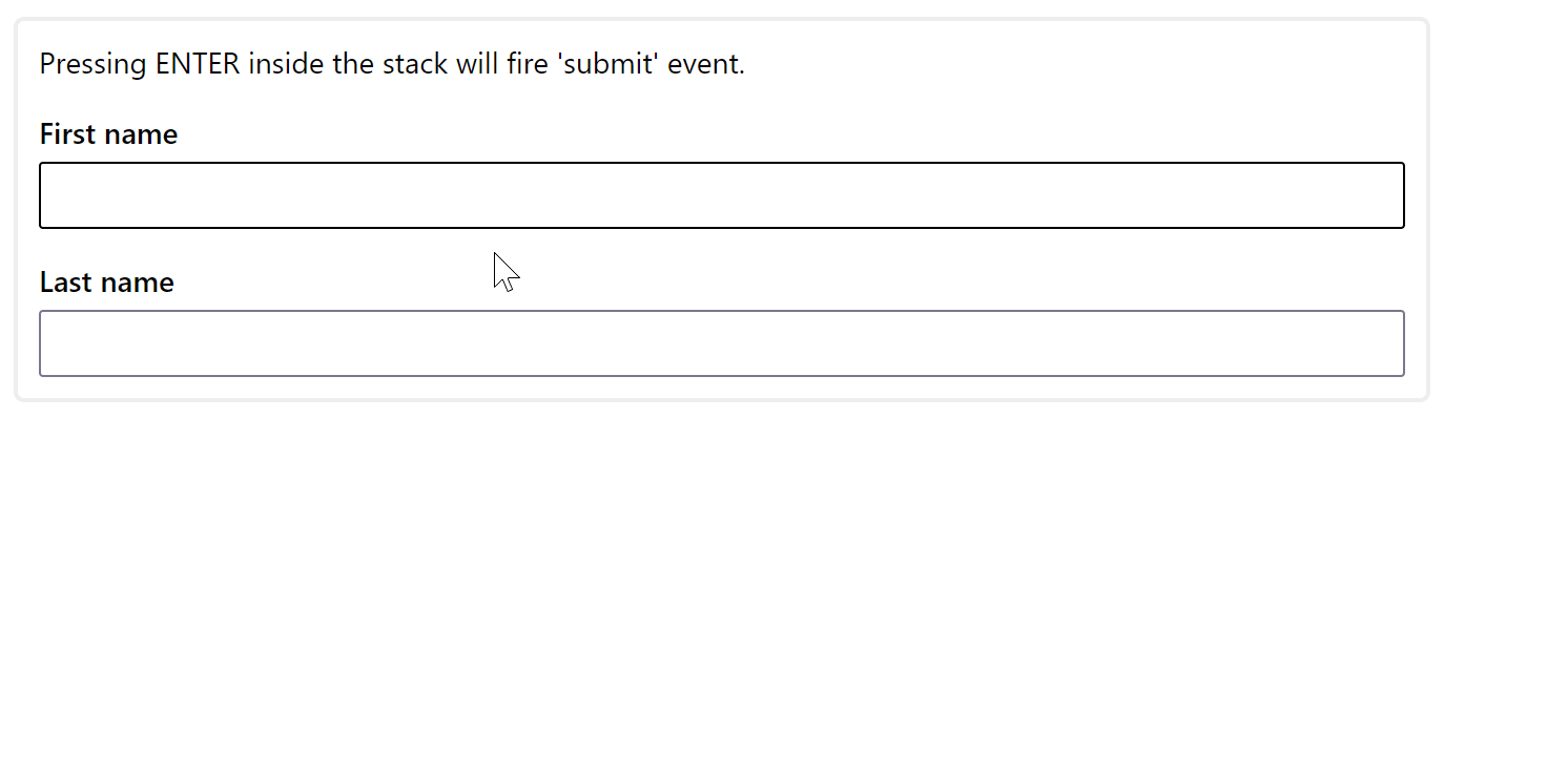 Text("Pressing ENTER inside the stack will fire 'submit' event."),
